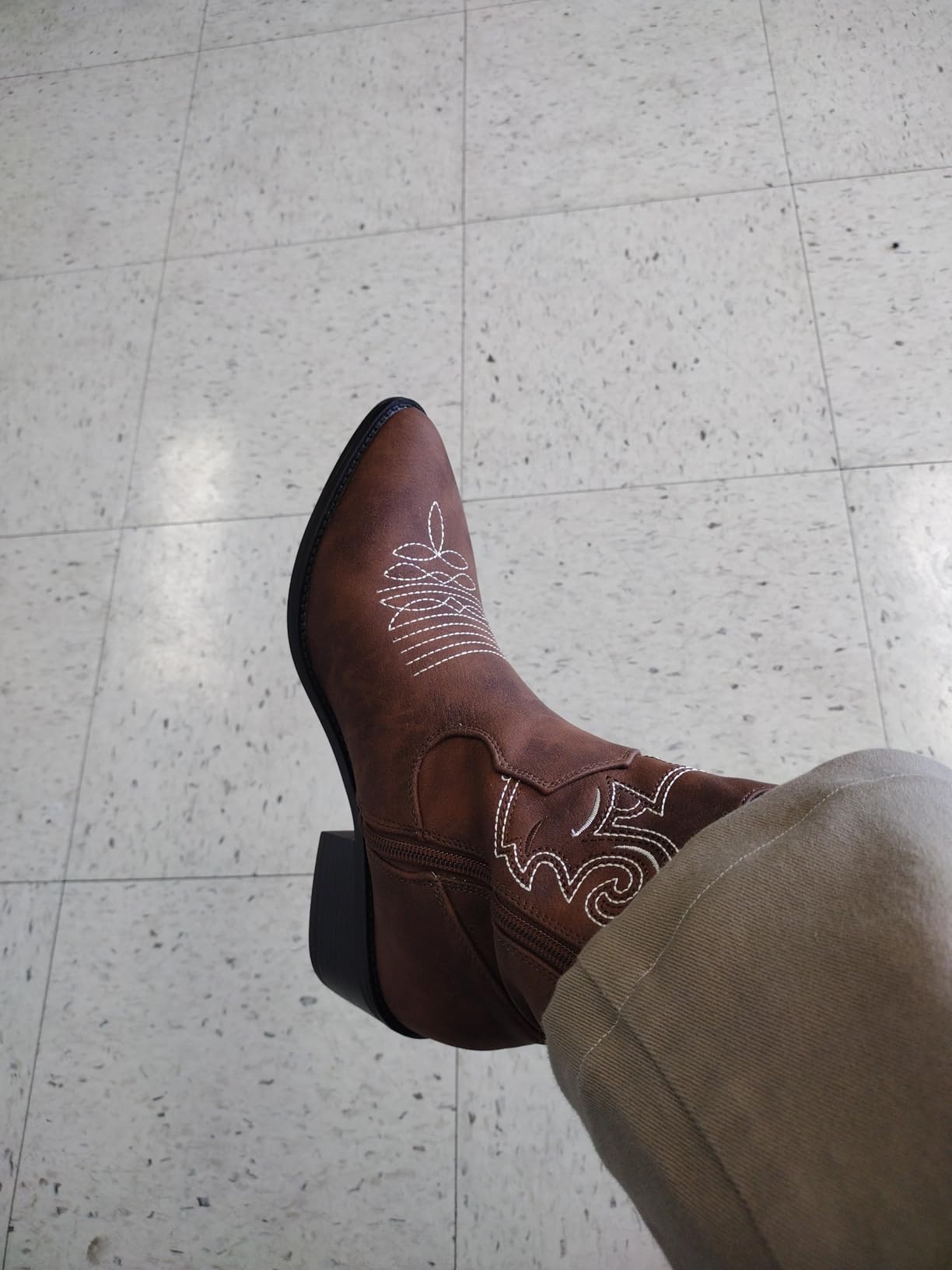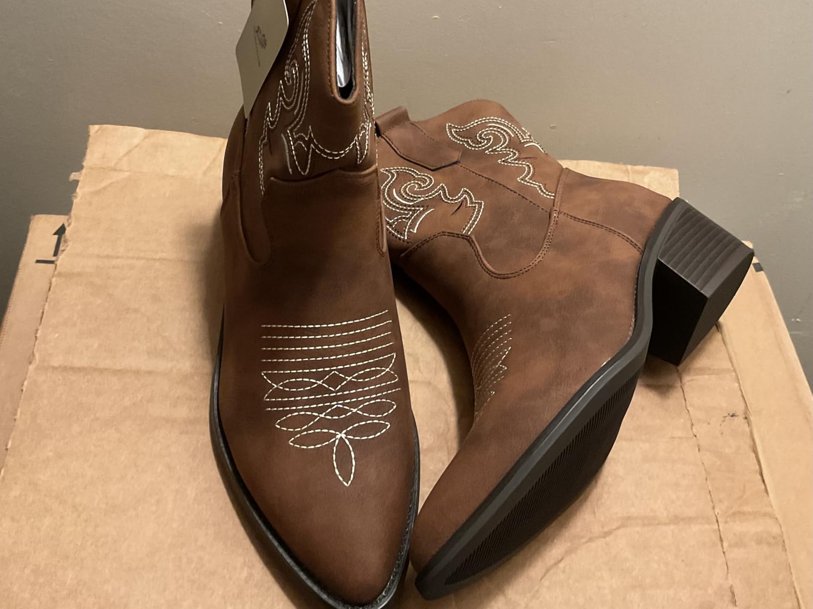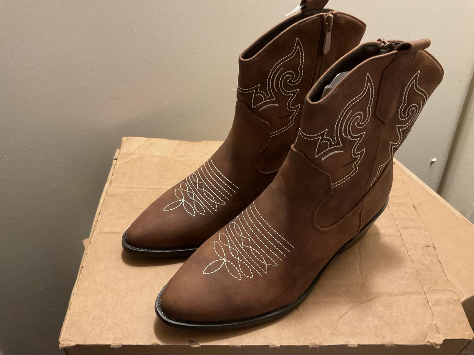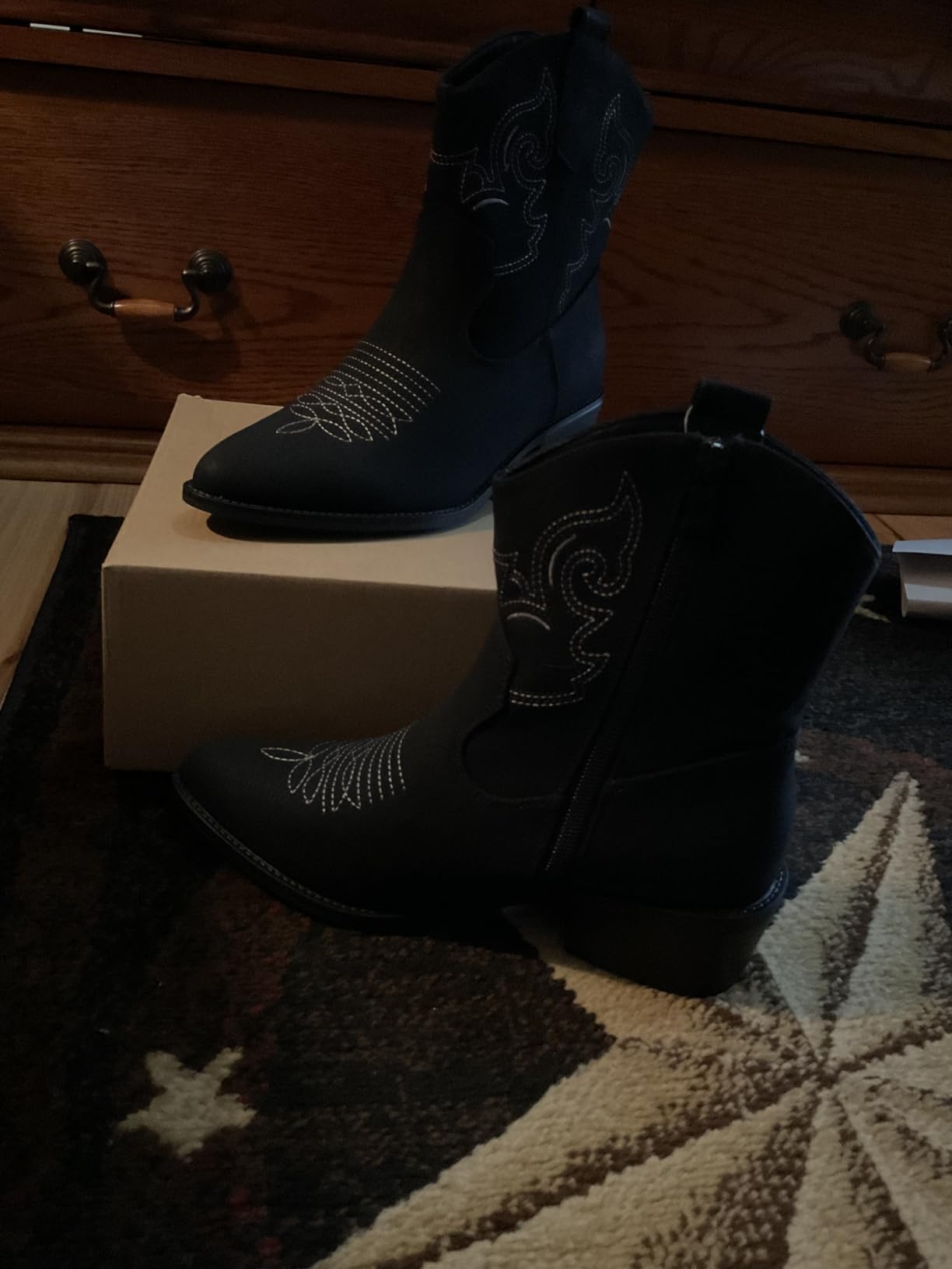Wide Cowboy Boots for Women Western Ankle Boots Pointed Toe 2-Inch Cowgirl Boots Retro Embroidered Short Booties with Side Zipper