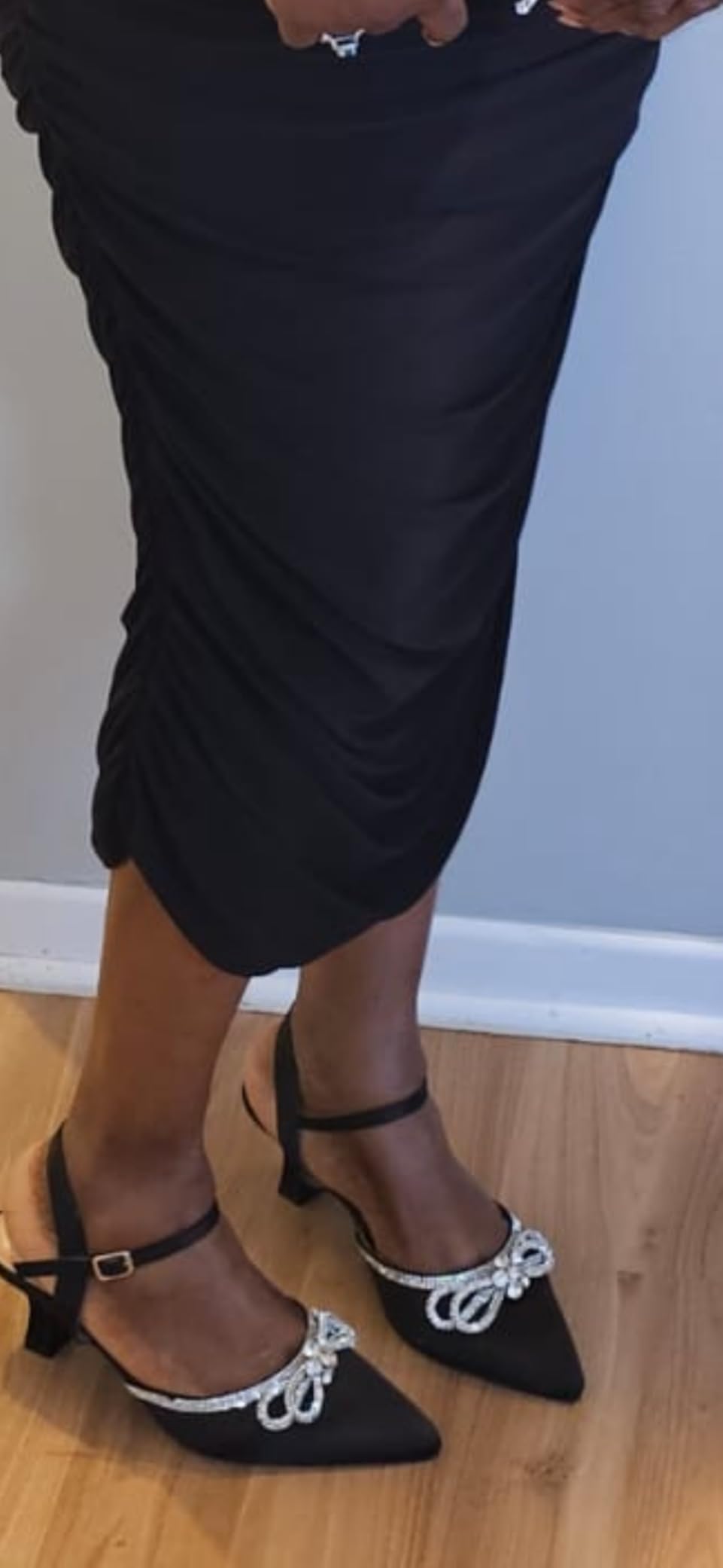 Wide Width Kitten Heels for Women Rhinestone Bow Pointed Closed Toe Pumps Ankle Strap Wedding Bridal Party Dress Shoesrhinestone bow heels
